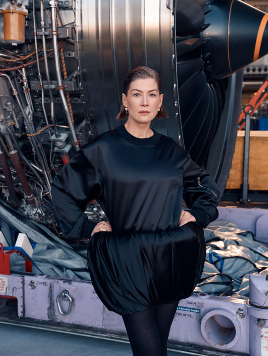 Award-winner, scene-stealer and the original cool girl, Rosamund Pike’s career is flying high. As she models the season’s latest looks in British Airways’ engineering hangar, she talks about her love of planes, jet-setting and finding feminism in the fantasy genre