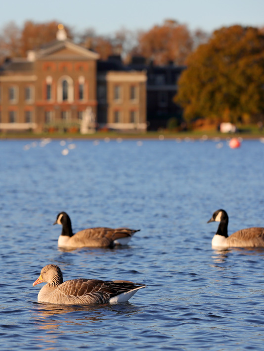 St Paul’s seen from a beach on the South Bank (Shutterstock); ducks swim in the Round Pond by Kensington Palace, Hyde Park