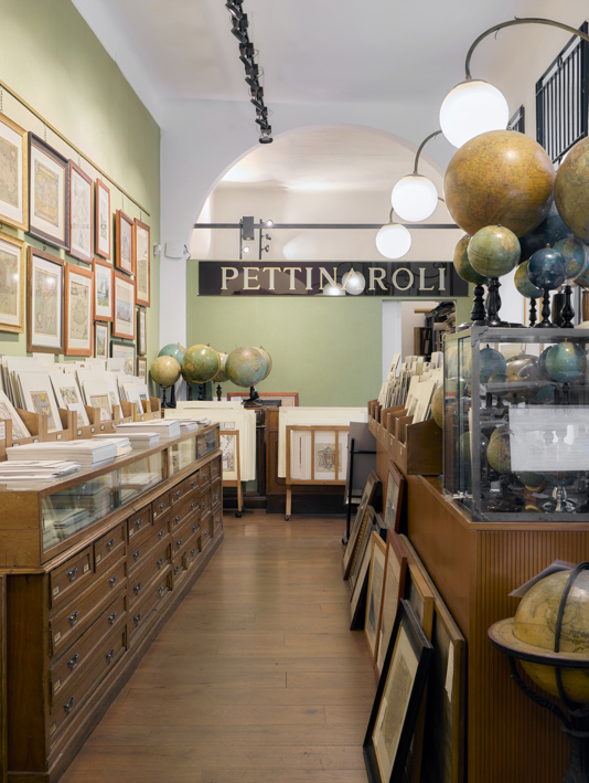 Vintage globes and prints at F. Pettinaroli (Luigi Fiano)