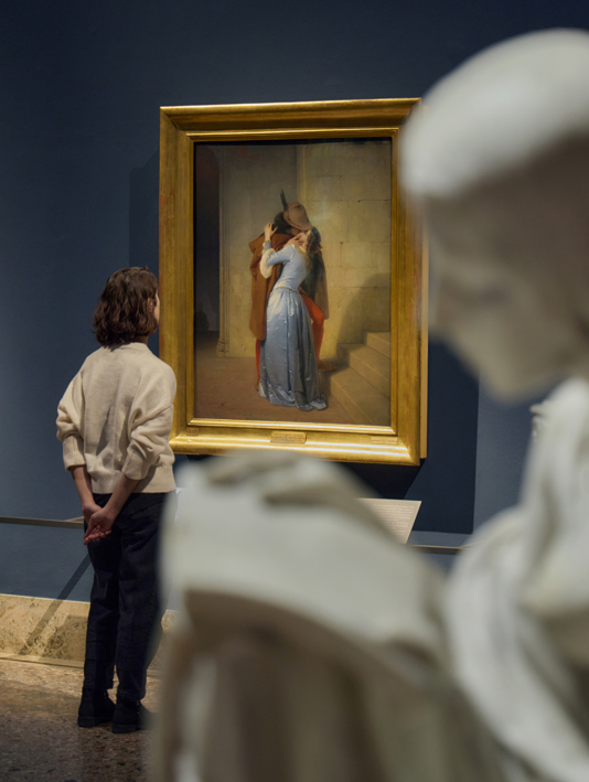 Napoleon as Mars the Peacemaker by Antonio Canova at the Pinacoteca di Brera; The Kiss by Francesco Hayez inside the museum (Luigi Fiano)