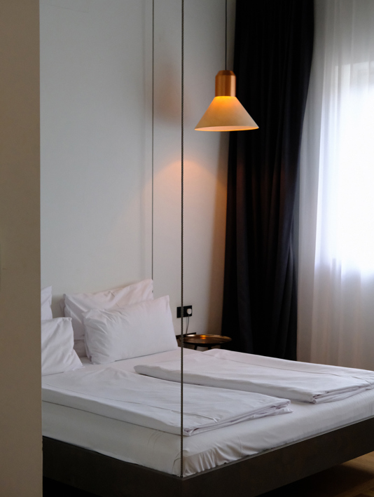 Spread across the third and fourth floor of former post office and barely noticeable from the street, this boutique hotel has 16 rooms and a rooftop bar. The loft studios were designed in collaboration with musicians, artists and other creatives, while the luxurious penthouse apartments offer views of the Alps. Expect high ceilings, hardwood floors and vintage touches throughout.