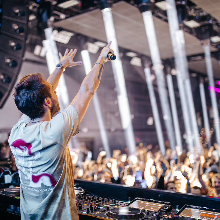 A DJ works the room at Nebula in Times Square (Kayla Segal)
