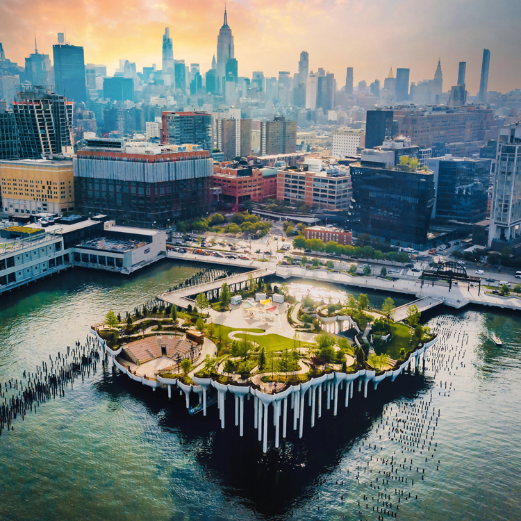 On departure, we suggest one of two routes: either visit Little Island at Pier 55 – an artificial park on the Hudson River that’s visibly striking and great to see in person – or opt for a walk along the High Line, a 1.45-mile-long elevated linear park created on a former New York Central Railroad line.