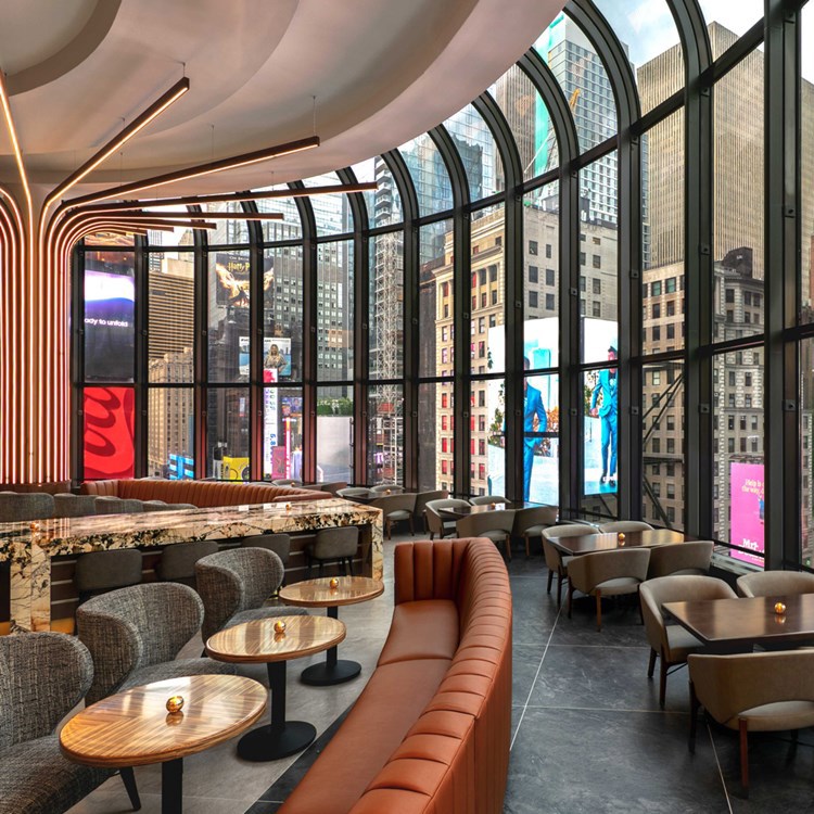The bar at New York Marriott Marquis offers views over Broadway
