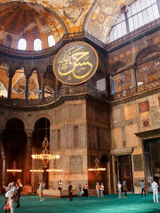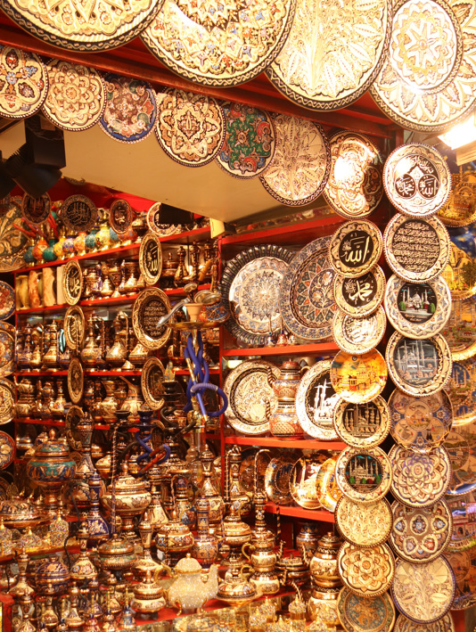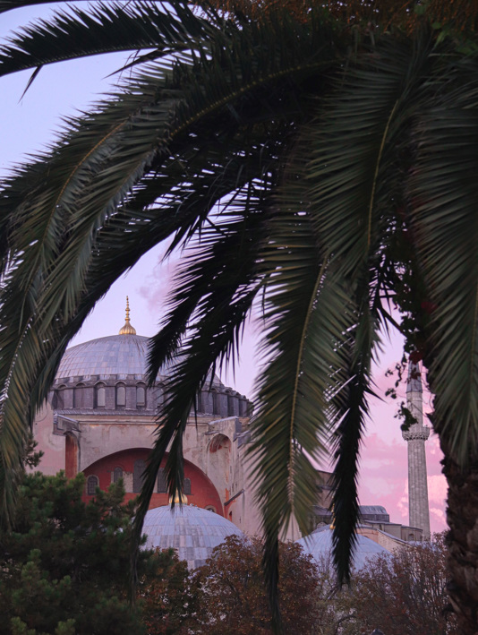 Opening image: the Hagia Sophia is an architectural marvel. / It was originally a basilica, then a mosque, then a museum and then recently a mosque again. / My favourite time to visit is early evening. The light pink exterior looks magical as the sun begins to set, causing it to glow brightly in Sultanahmet Square. / The building is one of the most significant surviving examples of Byzantine architecture. / A visit to The Grand Bazaar is a must. With 4,000 shops and more than 60 streets and alleys, there’s a lot to choose from, including Turkish tea sets.