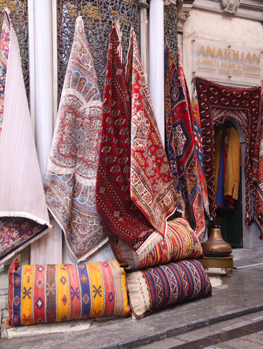 Top image: The Blue Mosque. All grand in size or detail, the many mosques of Istanbul were the main reason for my visit. / I particularly love the kilims at the Grand Bazaar. The patterns are layered with history. / The modern Mimar Sinan Mosque in the Ataşehir. / The Sultanahmet Mosque (Blue Mosque) was built in the early 17th century to rival the Hagia Sophia. / Galata Bridge, aka The Fishermen’s Bridge, is in the Golden Horn. Below it are decorative floating restaurants serving delicious balık ekmek (fish sandwiches).