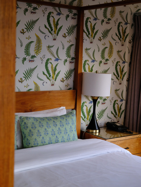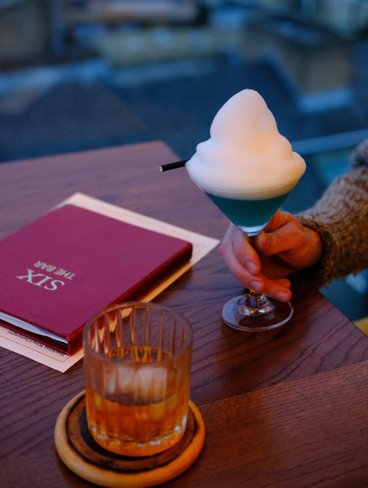 Bubble Whammy cocktail in the SIX bar at The Varsity; room at The Varsity hotel (Rebecca Naylor)