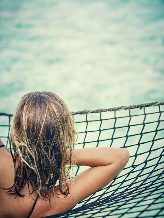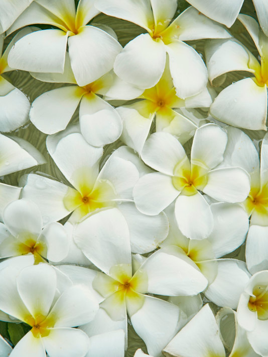 Just chilling in a hammock; ubiquitous frangipani plumeria tree flowers (Jenny Zarins)