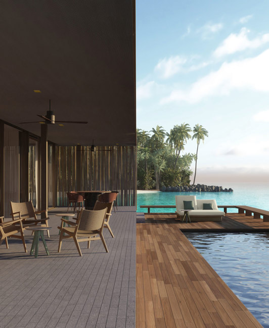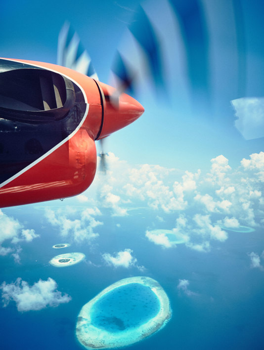 View from a seaplane over the Maldives; a villa at Hurawalhi (Jenny Zarins)