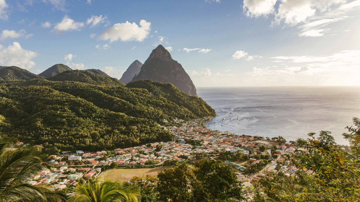 Soufriere town with views of the Pitons, St Lucia (Corinne Kutz)