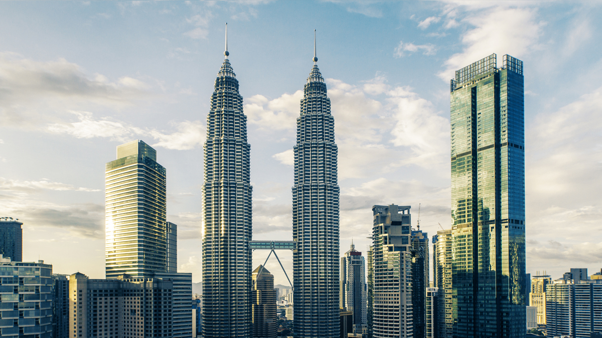 The Petronas Towers, the world's tallest twin skyscrapers, in Kuala Lumpur