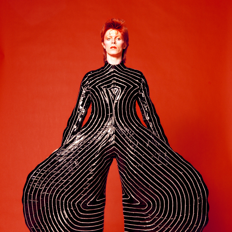 David Bowie in a stage costume designed by Kansai Yamamoto in 1972 for his Aladdin Sane persona (Masayoshi Sukita © Sukita The David Bowie Archive 2012)