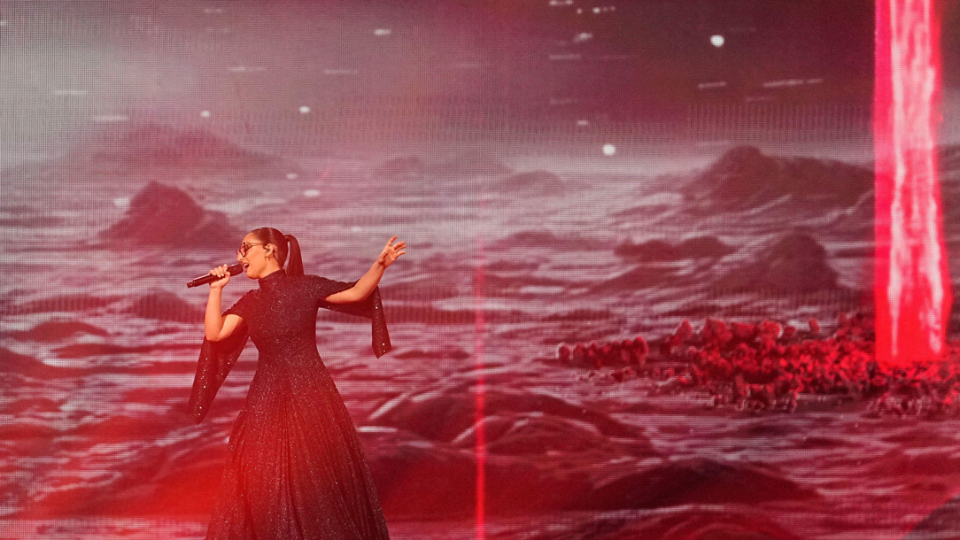 Klavdia performs ‘Asteromáta’ during the 2025 Eurovision Song Contest in Basel