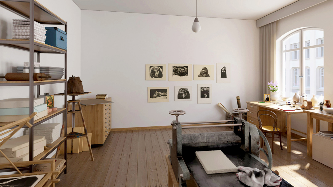 Reconstruction of the artist’s studio at the Käthe Kollwitz Museum (Kollwitz Museum Koeln)