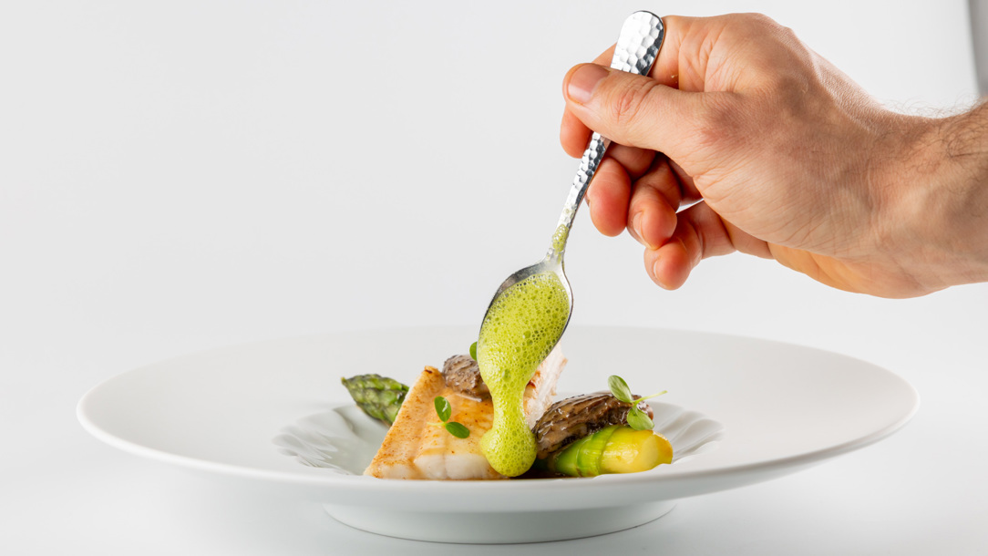Sole with asparagus, black morel, wild garlic foam and Albufera sauce from La Cuisine Rademacher
