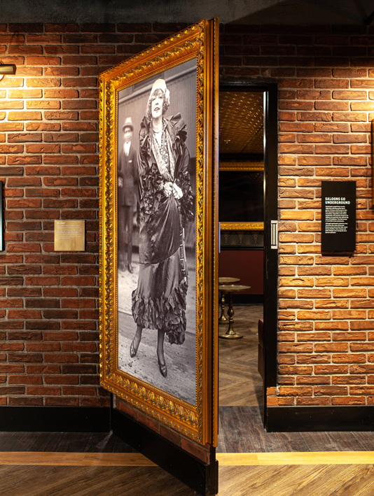 Hidden entrance to The Underground speakeasy and distillery at The Mob Museum; pedestrianised Fremont Street’s Viva Vision canopy is the world’s largest video screen