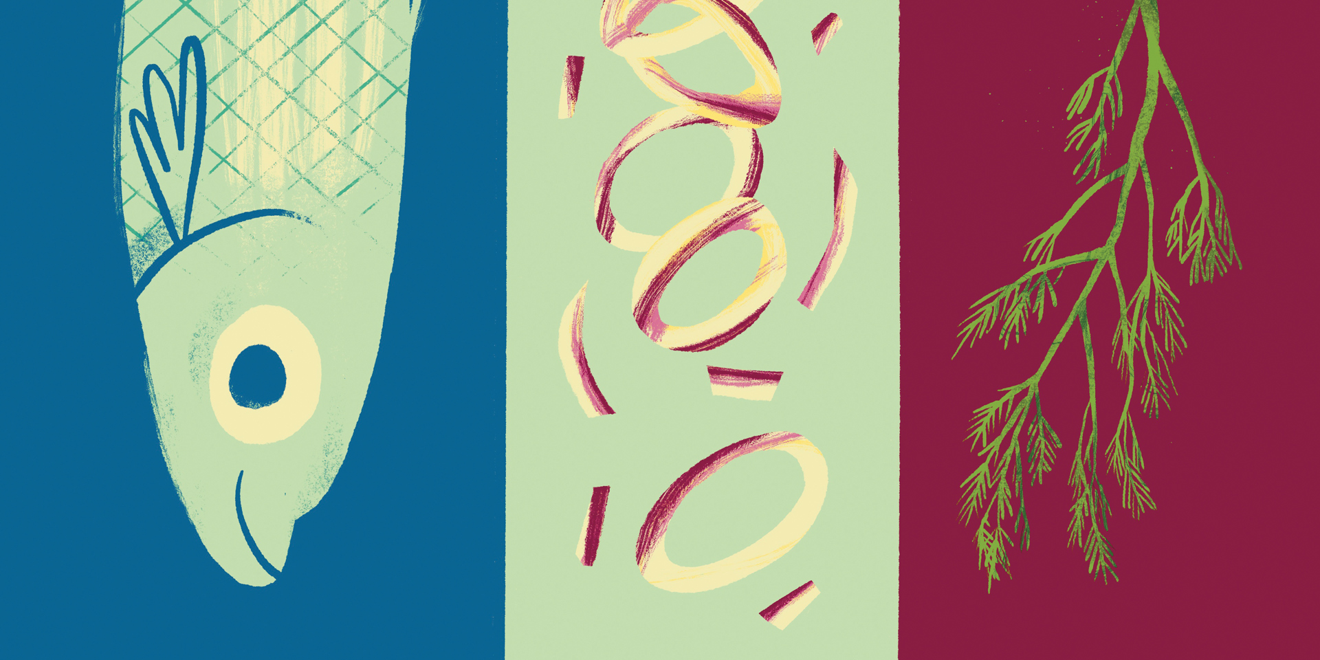 Ingredients: toasted sourdough bread, smoked eel, horseradish cream, pickled onions