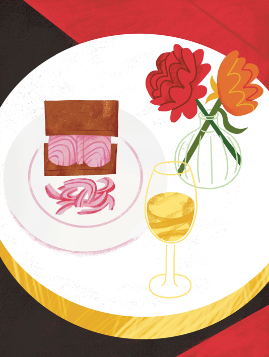 The humble sandwich’s foray on to the menus of white-table-clothed institutions is impeccably showcased by culinary icon Jeremy Lee’s smoked eel sandwich at Soho restaurant and private members club Quo Vadis. QV, as the cool kids call it, has been serving up seasonal British food since the roaring 1920s and has welcomed its share of colourful characters through its doors, especially during its past lives as a brothel and a residence for Karl Marx. In Lee’s signature dish, toasted sourdough from the artisanal Poilâne bakery is filled with slivers of savoury smoked eel, sweet pickled onions and a punchy horseradish cream. The seemingly simple dish delivers on both comfort and elegance, seamlessly fitting into its plush surroundings.