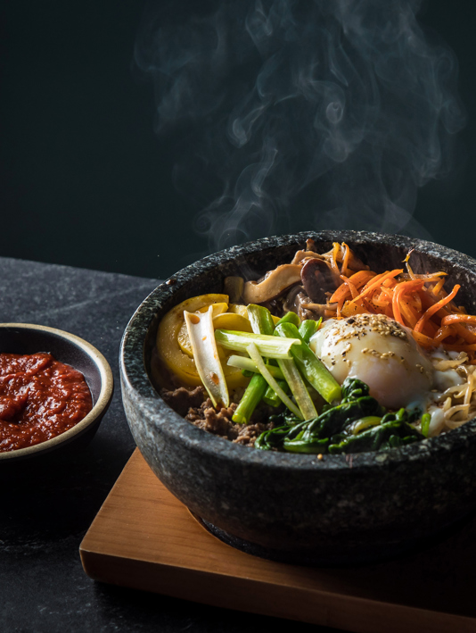 Dolsot bibimbap – Korean rice served in a stove-hot stone bowl – at Cote (Gary He); New York’s Flatiron district (Toms Rits)