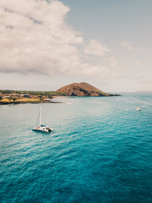 A catamaran navigates peaceful waters in Maui, Hawaii (Logan Armstrong); banana bread is Hawaii’s best-kept secret (Shutterstock)
