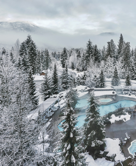 Warm up with a soak or steam in the lodge’s wood-fired hot tubs and sauna.