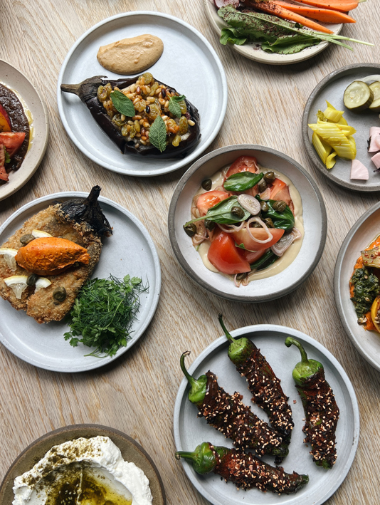 Bubala’s homely interior (Rebecca Hope); the restaurant’s Middle Eastern-inspired dishes are designed for sharing