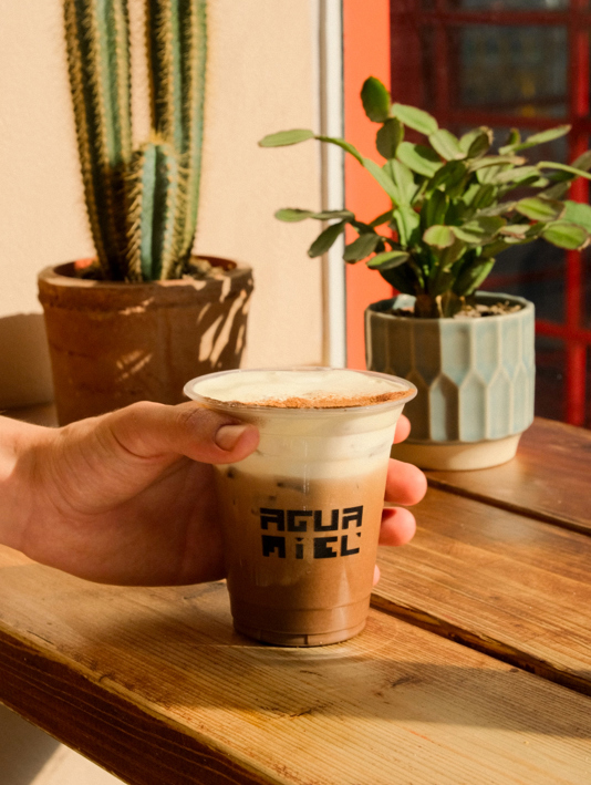 The minimalist Mexican interior of Aguamiel; the churrería’s cinnamon horchata cold brew