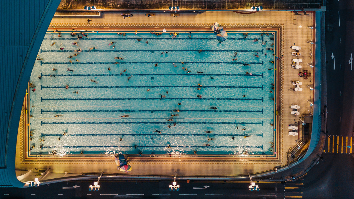 The 50m outdoor pool at the Kennedy Town Swimming Pool complex in Hong Kong (Romain Nicoloso/Amazing Aerial Agency)