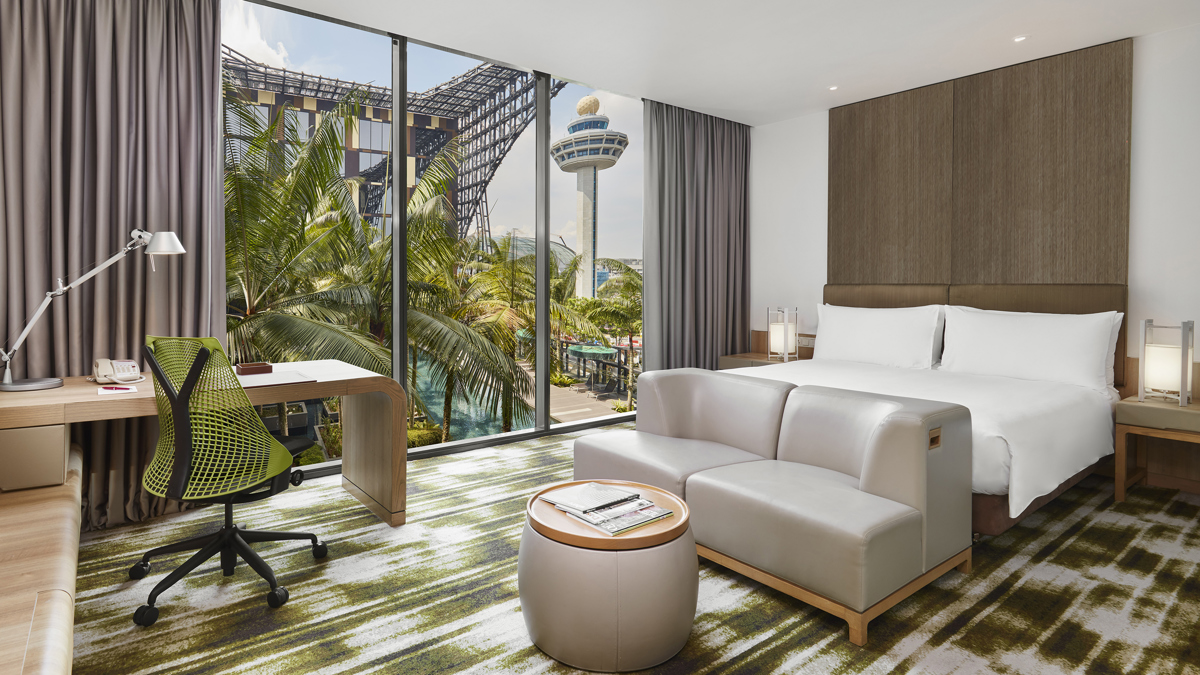 The room: A Deluxe King with a runway view will have you transfixed by take-offs (from £375). You can also book a four-hour stay for short layovers.