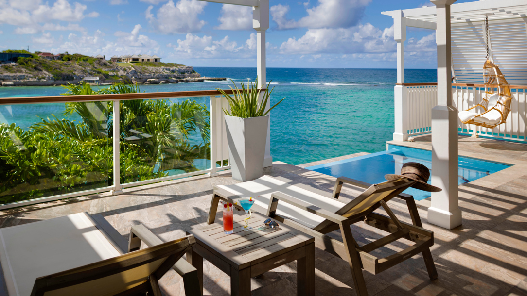 Villa with a private plunge pool at Hammock Cove. Opening image: the beach at Hammock Cove