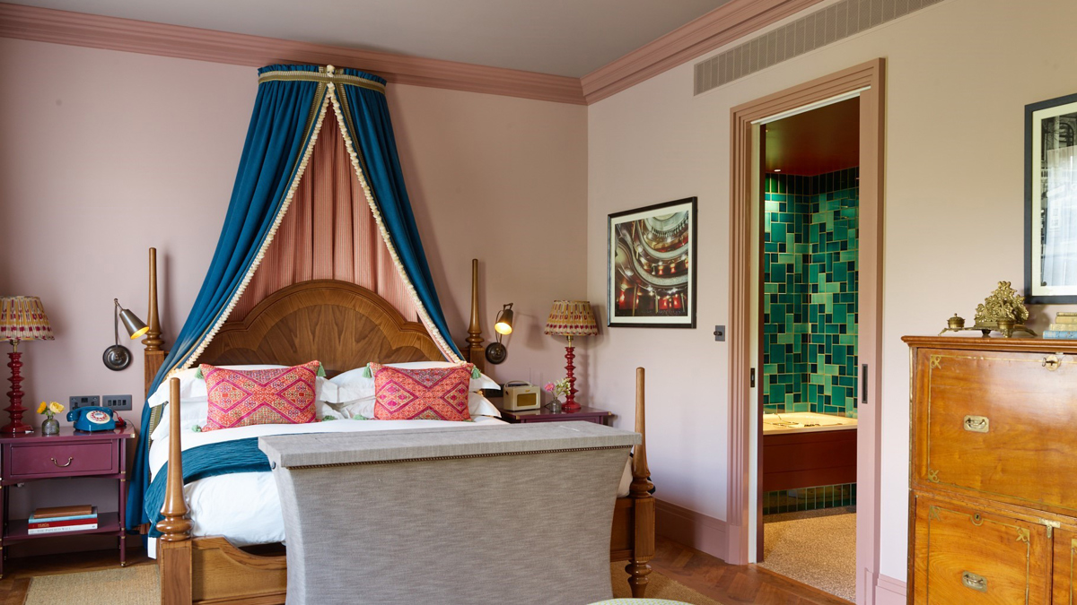 This Chelsea bolthole is pure drama – in the best, cosiest way. Tucked inside two elegant Georgian townhouses on Sloane Street, it brings country-house comfort and Japanese elegance to one of the capital’s bougiest neighbourhoods. Each of the 14 suites channels a different theatre in London – the Coliseum Room is a standout – with rich fabrics, curated playbills and bold, theatrical flair. But it’s the small touches that make you want to hunker down: Bamford bath products, help-yourself whisky decanters, personalised mini-bars and hand-drawn neighbourhood maps for wandering (or not). Downstairs, the Fuji Grill plates up Japanese dishes such as prawn tempura with spicy mayo and a heavenly miso rice pudding. The twinkly, Art Deco Sir Frank’s Bar is perfect for curling up with a punchy cocktail – don’t miss the Fuji Cloud served with cotton candy. There’s a snug library filled with London-centric reads, while personal assistants can organise everything from in-room massages to tickets for top West End shows.