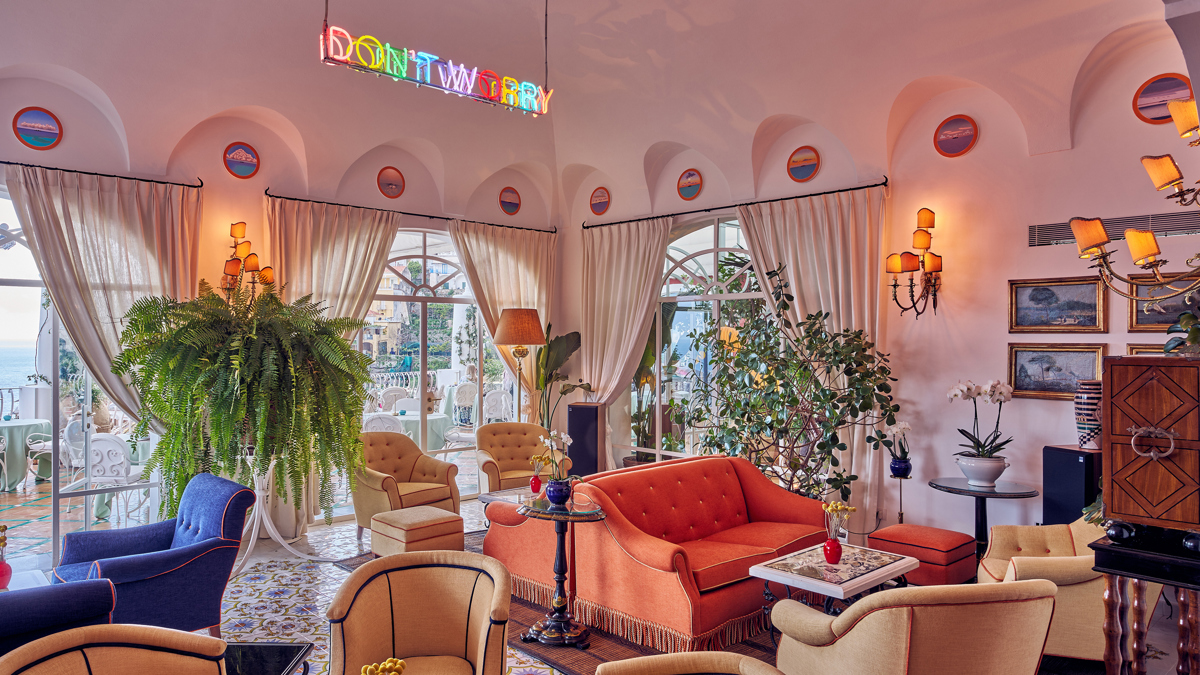 It was in Japan, intoxicated by the heady timbre of vinyl at Tokyo’s most intimate listening cafés, that Le Sirenuse manager Aldo Sersale decided this was the direction to take the existing bar space in what was once his family villa, now a legendary clifftop hotel. Sersale brought in a crack team: famed audio consultant Stefano Menicagli to mastermind the sound system, an in-house director of mixology, Alessio Lupo, to create drinks inspired by Italian pop classics, and legendary analogue DJ, Paolo Sciabu. Sersale commissioned artworks that would continue the hotel’s dreamlike energy: Caroline Bachmann’s small circular beach scenes line the arched vaults on the bar’s ceiling, while Martin Creed’s multi-coloured neon sign – ‘DON’T WORRY’ – gave rise to the bar’s name. The resulting vibes and menu emanate a mid-20th century Italiano pop-art energy, but balcony views across the bay of Positano are nothing short of timeless.
