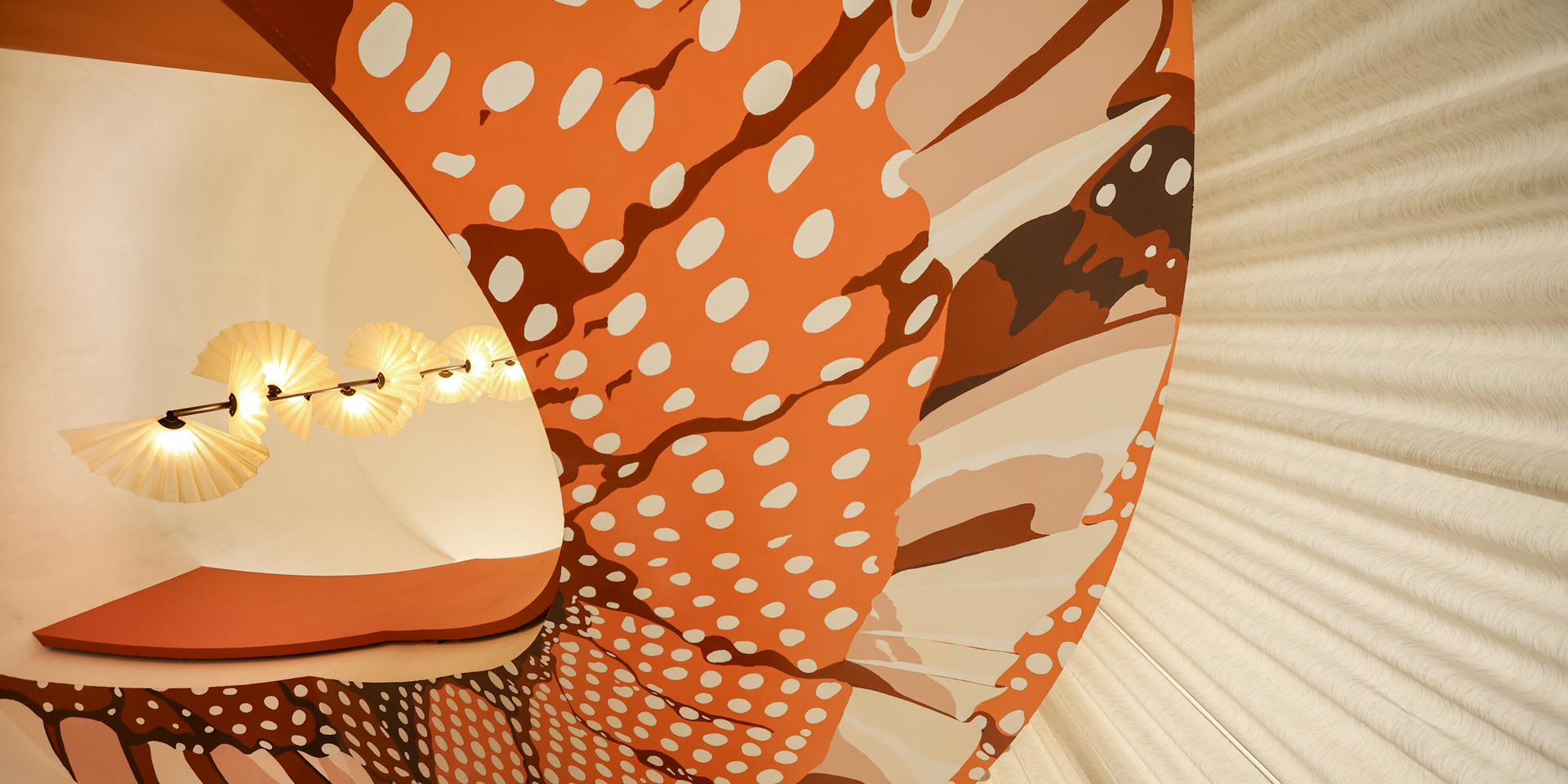 Reception area at Armani Hotel Milano. Opening image: La Falda mural by Marta Bernad at SO/ Sotogrande, Costa del Sol