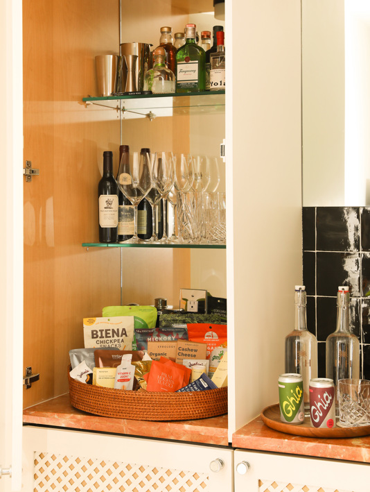 The real stars of this 1970s-inspired boutique hotel aren’t the celebrities spread out on its striped sun-loungers, but the 50 individually styled suites a few storeys above. Guests who have rested their heads here will know what we mean by the turn-down treats: a new book on your nightstand (you’d mentioned the author somewhere earlier that day), a silver bowl of salt-fried, vegan kale crisps that appear in your in-room kitchen, a homemade sugar scrub by your bathroom basin. They’ll know that the in-room extras also extend to not one, but two mini-bar-baskets. Creative director Gabriella Khalil keeps personal touches alive in each, abiding by a light ‘naughty’ and ‘nice’ theme – in the former, everyone’s favourite Tortuga Caribbean rum cake, in the latter, Medjool dates, almonds and nut butter from artisanal brands. Crystal glasses are on the top shelf, so you can go ahead and decant your canned, non-alcoholic (we’ll let you decide which basket this should go in) aperitif in style.