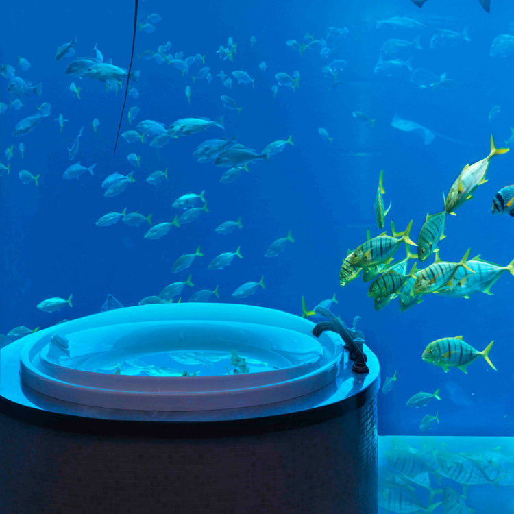 Atlantis, The Palm, DubaiWith a total of 1,539 rooms, this mega resort’s two underwater suites look out on to the largest open-air aquarium in the Middle East and Africa, home to more than 65,000 marine animals. Floor-to-ceiling windows line each suite’s lounge, bedroom and bathroom, where guests can bathe with toiletries by La Ric before wrapping themselves in bathrobes from French linen brand D Porthault.Book a stayPangkor Laut Resort, MalaysiaSet on Pangkor Laut island on Malaysia’s western coast, this sprawling complex is built on the jungle’s fringes, where long-tailed macaques roam and oriental pied hornbills soar overhead. Here, the Spa Villas sit on stilts on the water, each with an oversized tub set next to a seafront balcony where guests can reinvigorate with calming views of the Strait of Malacca.Book a stay