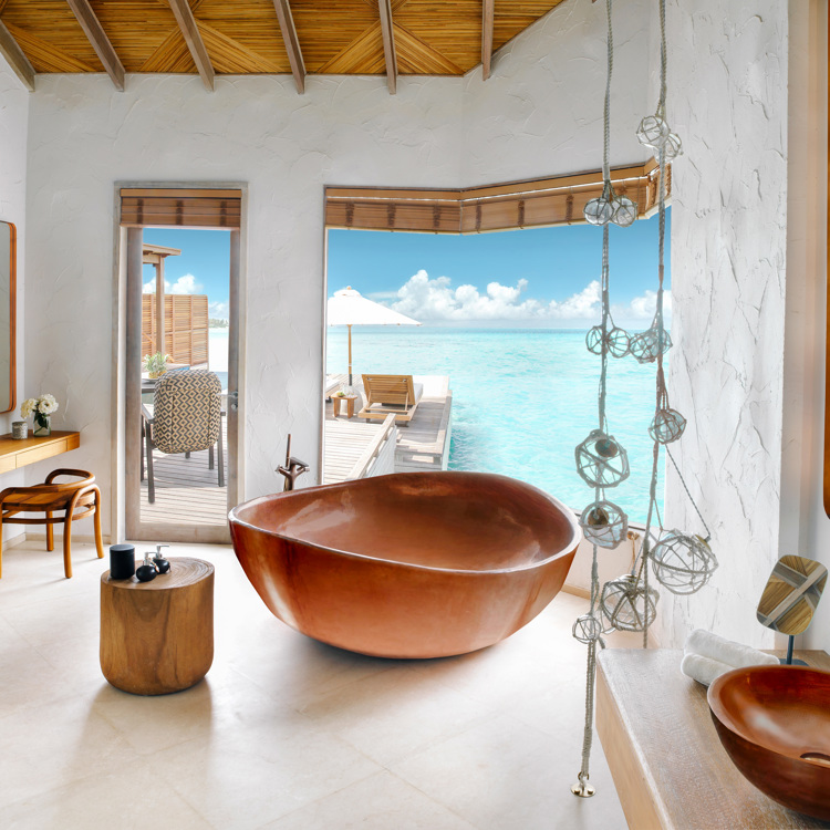 Punta Tragara hotel in CapriDesigned by Le Corbusier, this incredible Capresian property has hosted the likes of President Eisenhower and Winston Churchill, and no two rooms are the same. The Art Suite at Punta Tragara is filled with quirky design notes such as an enormous gilded mirror, warped lamp stands by Promemoria and a free-standing tub facing astonishing views of the Faraglioni rocks and sapphire waters below.Book a stayFairmont Sirru Fen Fushi, the MaldivesThe USP of this bucket-list hotel is undoubtedly the view from its Water Sunrise villas, where guests wake to cobalt skies and gin-clear waters. Alongside butler service, the villas come with a private plunge pool, wine fridge, Bang & Olufsen music system and, in the bathroom, an over-sized copper bath tub with infinity views of the open sea.Book a stay