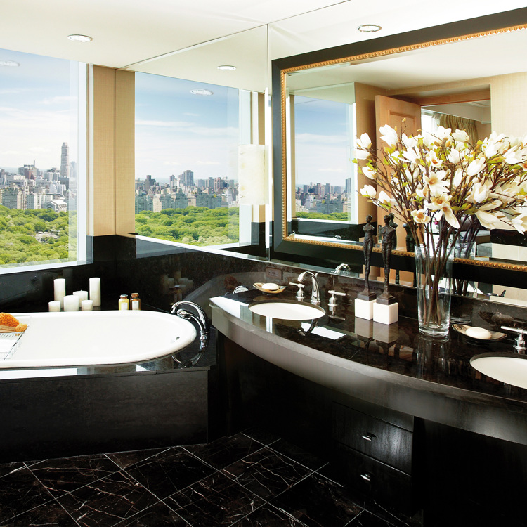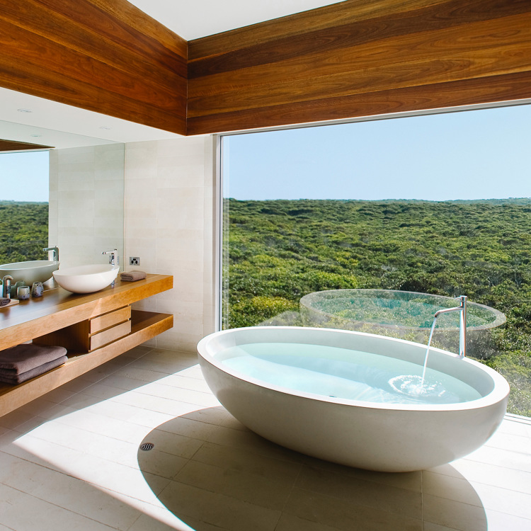 Mandarin Oriental, New YorkOverlooking Central Park and the Hudson River, the Oriental suite on this luxury stalwart’s 52nd floor is a vision of blue, cream and silver, fitted with a custom designed kitchen unit and a living room with Brazilian Cherry hardwood floors and handcrafted oriental rugs. Coated in sleek black marble, the bathroom looks out on the Big Apple’s iconic cityscape, allowing guests to soak in style while admiring the verdant park below.Book a staySouthern Ocean Lodge, Kangaroo IslandFor nature-lovers looking for a true back-to-nature hideaway, this remote resort ticks all boxes. Check into the Osprey Pavilion suite where décor includes a sleek sunken lounge, elegant furnishings and mesmerising views of the coastal wilderness. In the bathroom, enjoy the heated limestone floors before soaking in the hand-sculpted granite bath.Book a stay