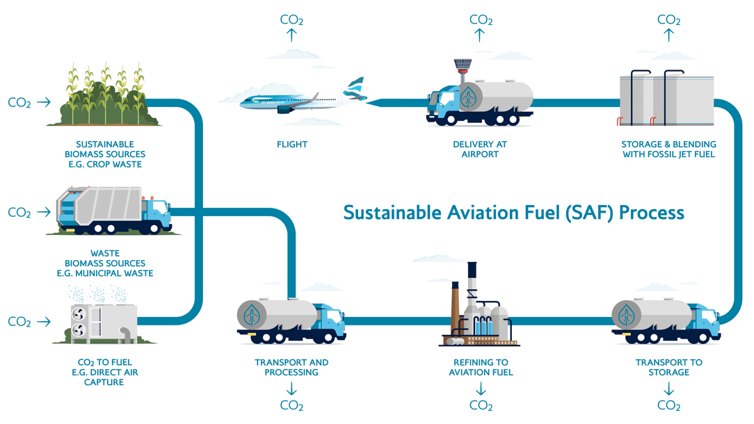 *Sustainable Aviation Fuels (SAF) are defined in the Refuel EU Aviation Regulation as aviation fuels that are either synthetic aviation fuels, aviation biofuels or recycled carbon aviation fuels. For further information, please visit BA Better World.