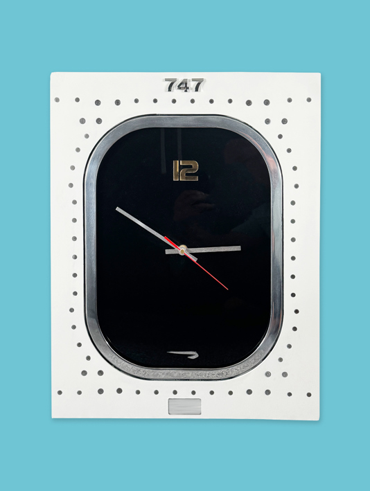 Commemorative piece of window cut from a British Airways Boeing 747-400; a Boeing 747 window clock