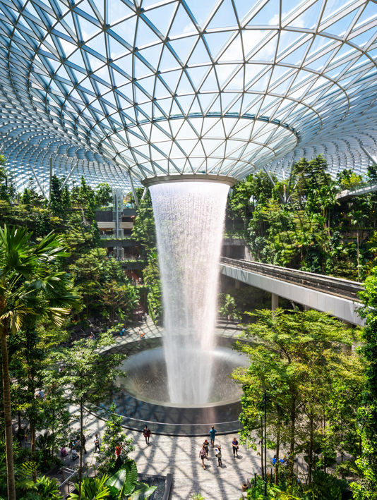 Nature-themed Jewel Changi airport in Singapore; Downtown Tokyo