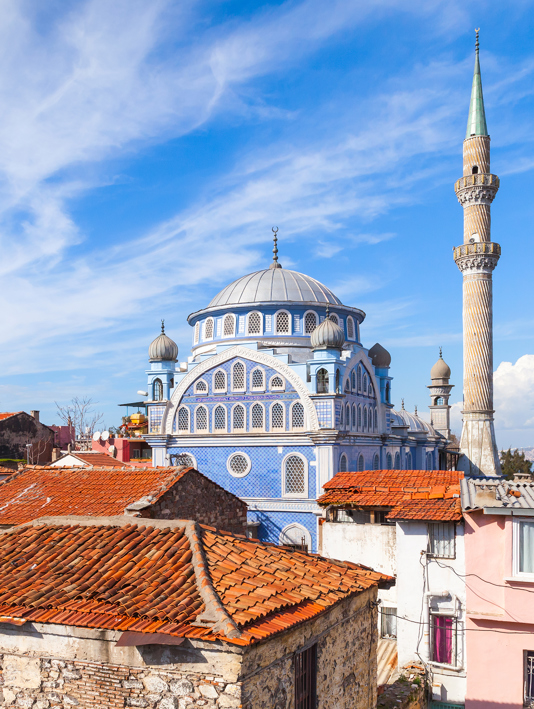 Fatih Camii Mosque, İzmir, and traditional Turkish tea