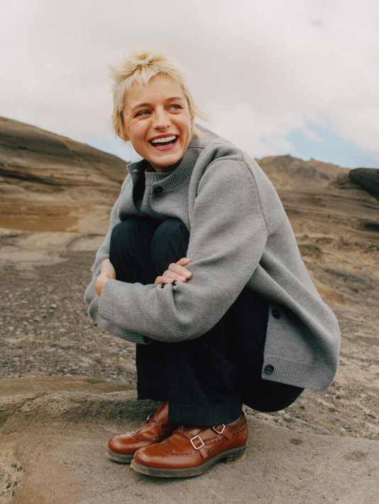 “It was such a beautiful experience,” says Emma Corrin of High Life’s cover shoot for the print edition, which involved driving around Iceland’s stunning Reykjanes Peninsula in a team minibus. “It really felt like we were on a school trip,” they add with a smile (Corrin’s pronouns are they/them). “But we got out of there in good time.”