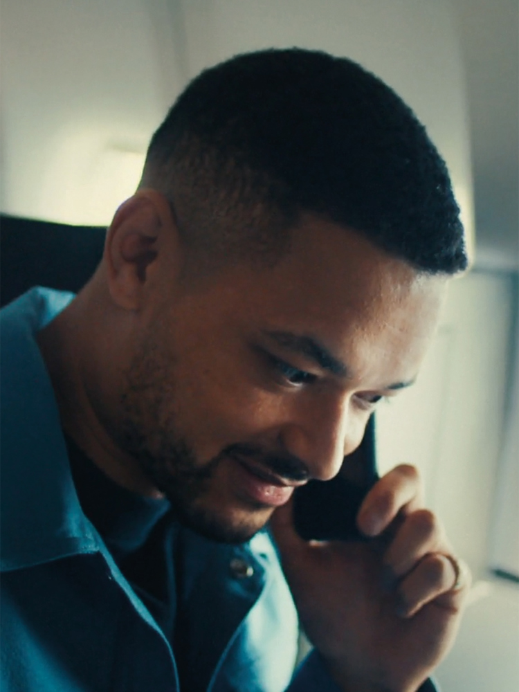 Bartlett chats to his mum before take-off in the British Airways safety video