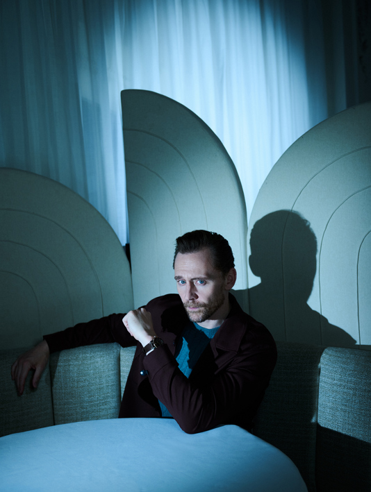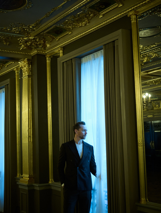 “It’s one of those moments in life where you get to see hidden London,” grins Tom Hiddleston, recalling his High Life shoot in the capital’s storied Hotel Café Royal, from which he could see over Piccadilly’s iconic illuminated billboard. “I’ve never stood at that vantage point. I’ve walked through Piccadilly Circus probably over a thousand times in my life. I could see London in a different way.”
