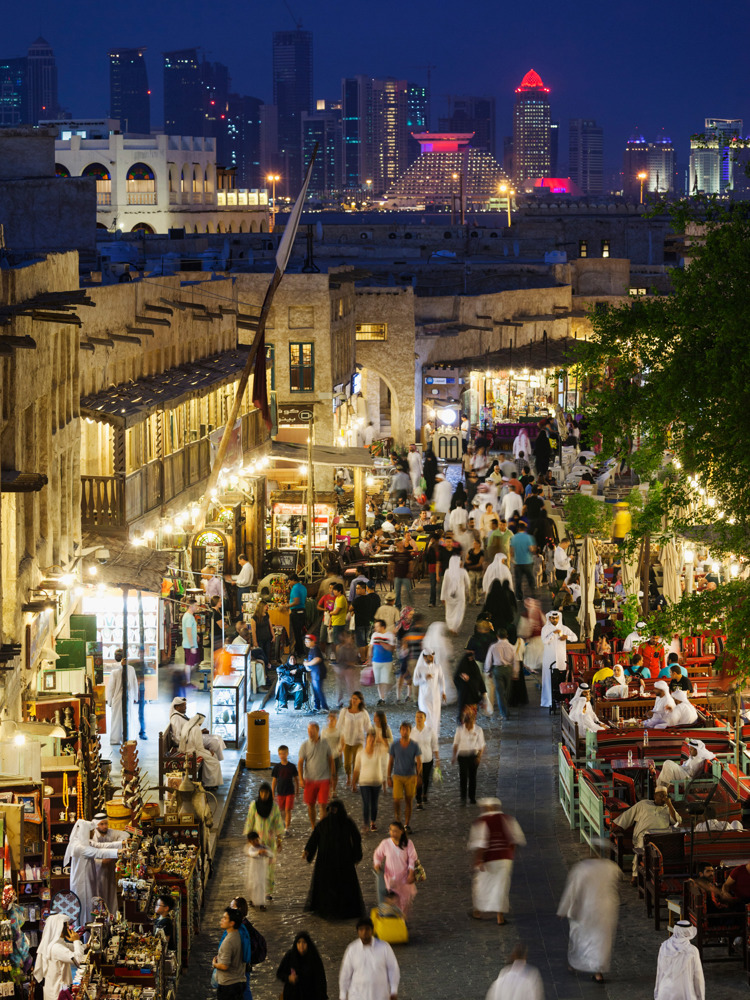 Doha's Souq Waqif at night. Photo: Getty Images