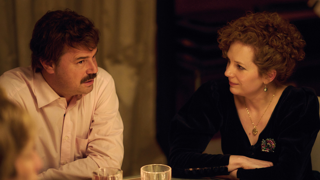 Danny Dyer as Freddie Jones with Katherine Parkinson as Lizzie Vereker in Rivals (Disney)